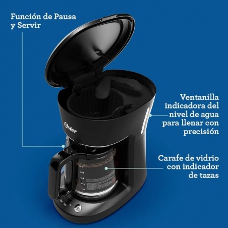 La Cafetera Programable Oster® de 12 tazas está diseñada para satisfacer las necesidades de los amantes del café que buscan comodidad y eficiencia en su rutina diaria. Con la capacidad de programar la preparación del café con hasta 24 horas de anticipación, puedes despertar cada mañana con el aroma de una taza recién hecha.