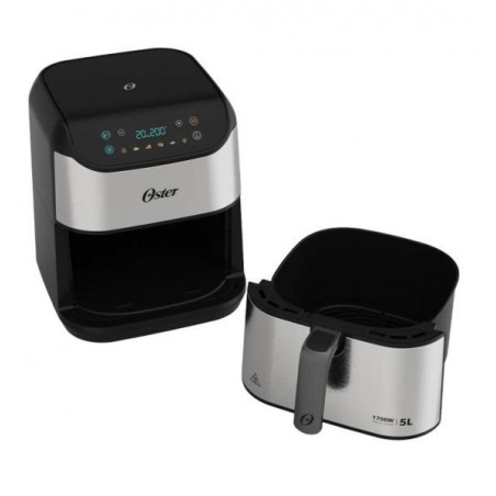 Bella por fuera, extraordinaria por dentro: la freidora digital de acero inoxidable Oster® de 5 litros utiliza todo el potencial del diseño para aportar más belleza, practicidad y eficiencia a tu rutina.