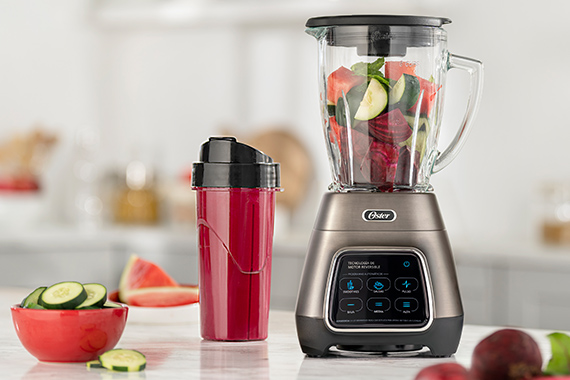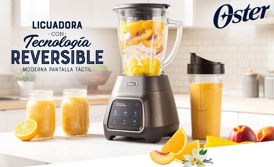 Licuadora Oster® programas automáticos con tecnología reversible, pantalla táctil y vaso BLend-N-Go