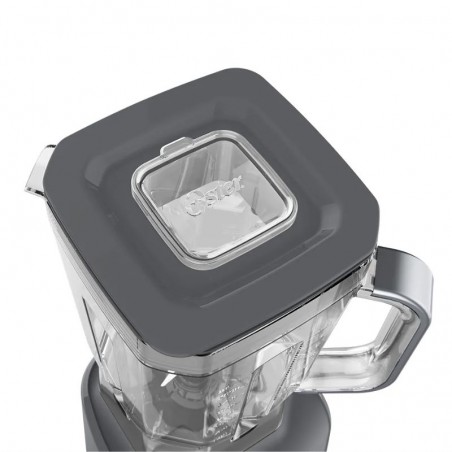 La tapa cuenta con un anillo de sellado que evita derrames y un dosificador para añadir ingredientes sin necesidad de quitarla. Además, su base metálica con acabado elegante y moderno le otorga un aspecto sofisticado y robusto, ideal para cualquier cocina.